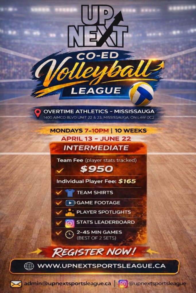 Join Mississauga’s competitive volleyball leagues. Secure your spot and take your game to the next level.